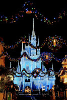 It was nearing parade time and we were warned to find a viewing point early because it gets crowded very quickly. The park officially closed at 7 pm and only those who had purchased tickets to watch the parade could stay in the park. This must be a massive task for the cast and crew of the park to do a sweep from one end to the other and usher out anyone not staying. We had to wear a special wristband and we were constantly being politely asked to show it as the clean out began right on 7. We found the designated viewing area for mobility impaired people and had a perfect spot to view the Castle Steps Concert, Mickey's Christmas Parade and the Wishes Nightime Spectacular fireworks and projection show. We did take some footage of them, but my cinematography is not great, and there were some heads in the row. So here are the official HD quality versions as well as some of Mel's great photos underneath. It's hard to describe how stunning the castle is and the way they are able to light and project things onto it. It truly was magical. Enjoy!